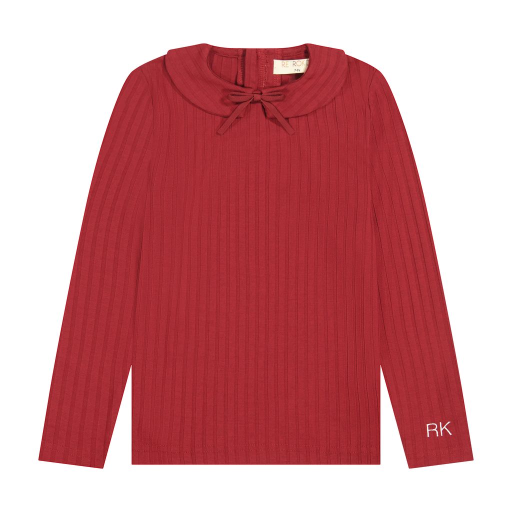 Retro Kid Burgundy Mae Bow Ribbed Collar Tshirt