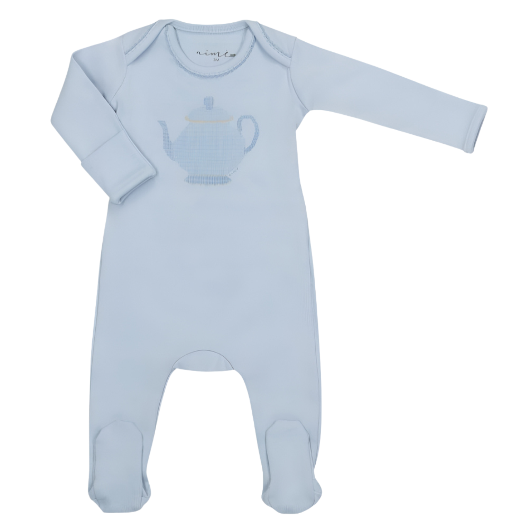 Aimé Boys Teapot Printed Footie – Soft Cotton Baby Sleepsuit