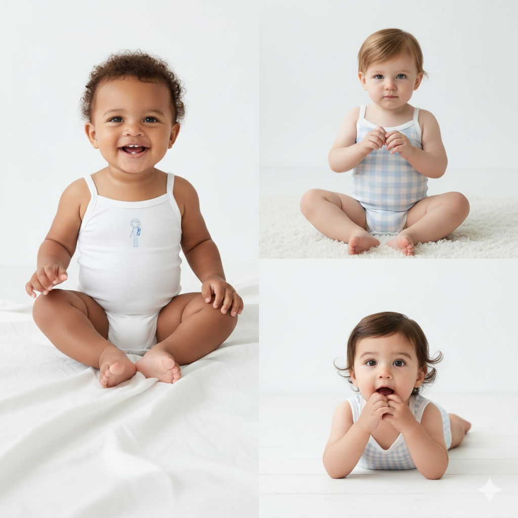 The ultimate base layer for your little prince. The Aimé Child Luxury Boys Gingham Sleeveless Bodysuits are crafted from ultra-soft, breathable premium cotton and finished with classic gingham trim. Designed for newborns and toddlers, this refined 3-pack offers everyday comfort, easy snap closures, and timeless style—perfect for layering or warm-weather wear.