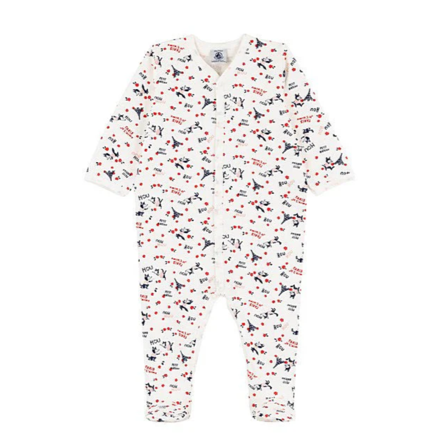 Petit Bateau Baby Girl Front Snap Parisien Print Footie | Soft Cotton Sleepsuit