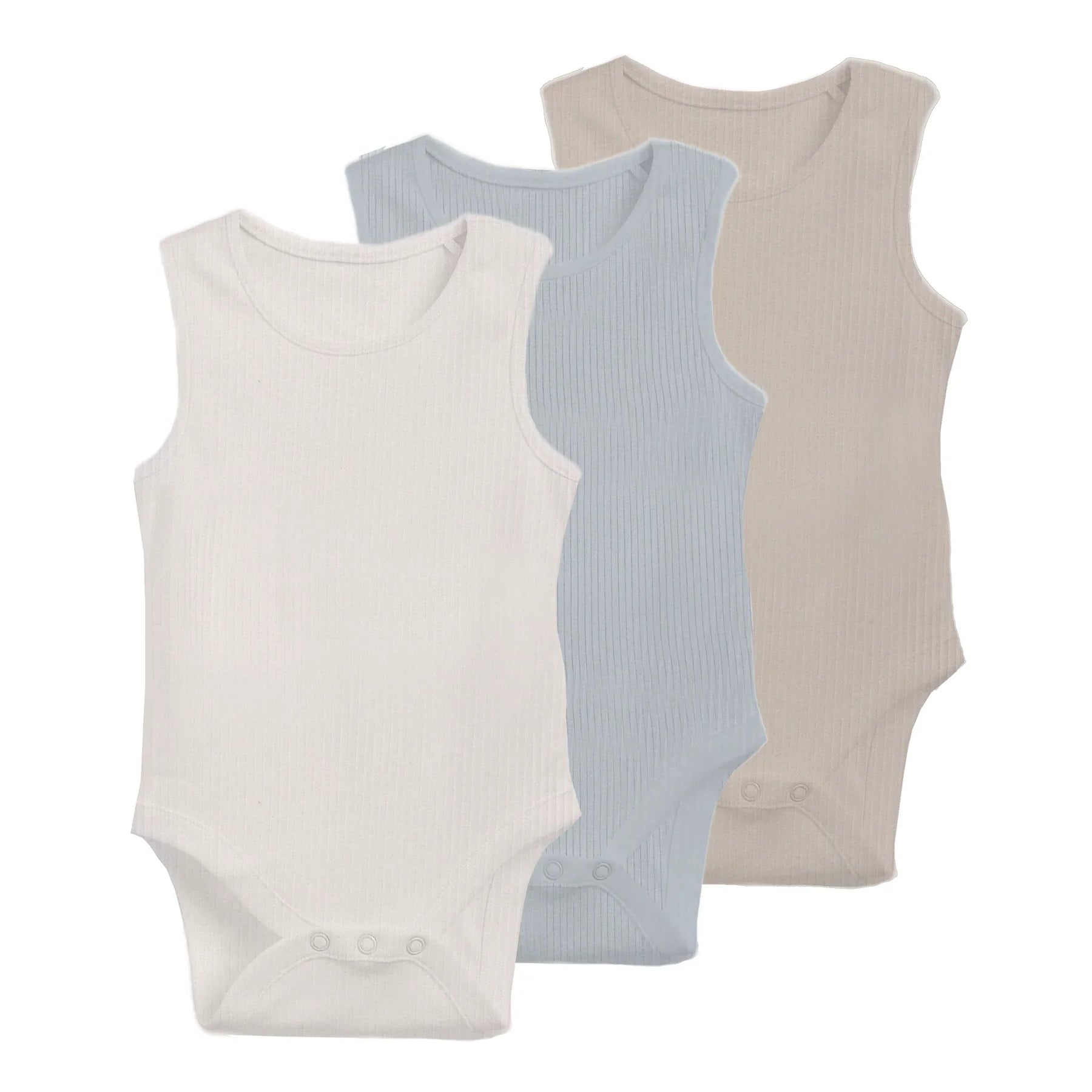 Ely's & Co 3 Pack Ribbed Tank Undershirt Blue, Tan, Ivory