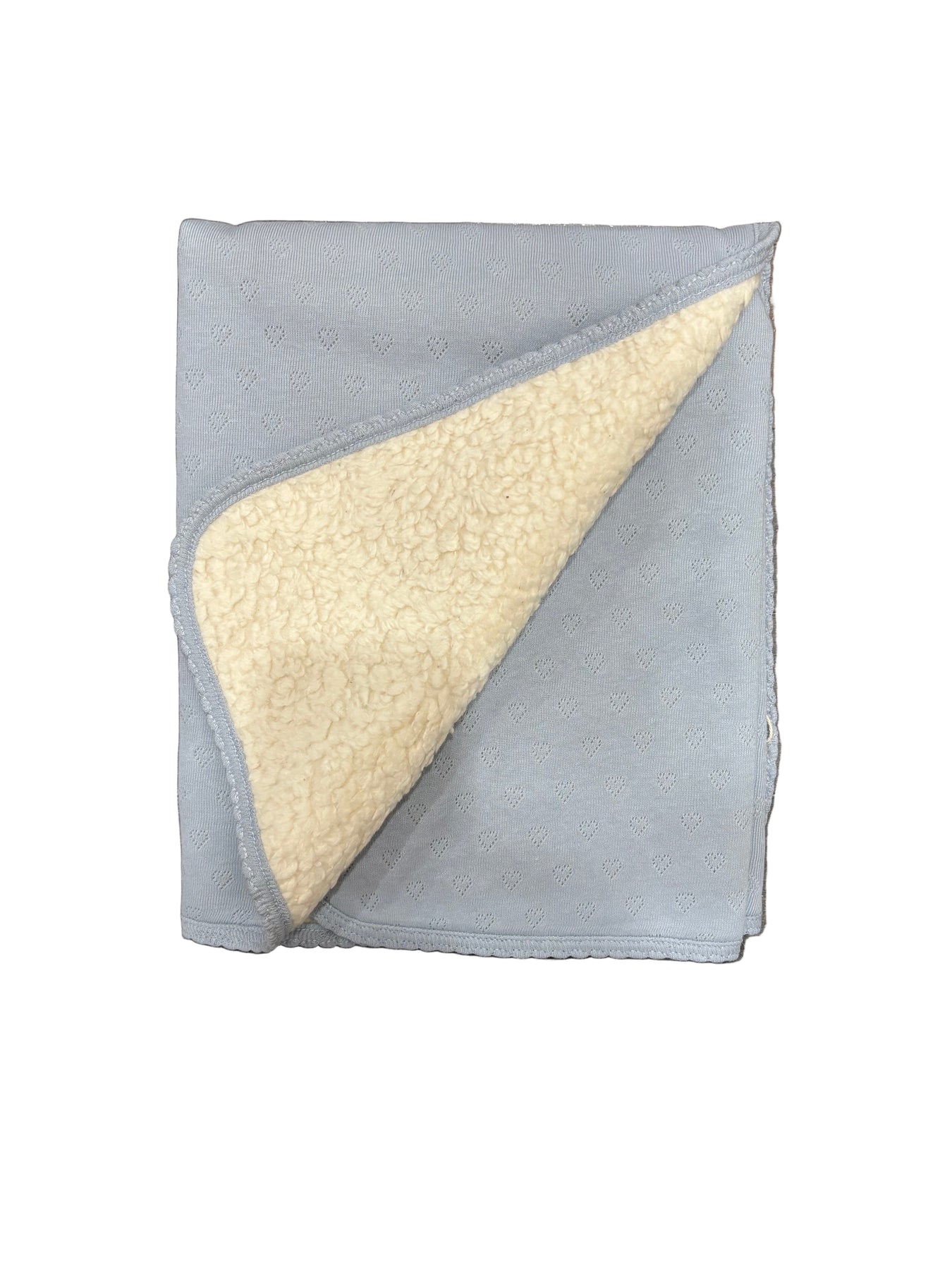 Keep babies cozy and stylish with the Bebe Organic Sea Heart Pointelle Fur Blanket—soft organic cotton with plush fur detail, perfect for naps, stroller rides, or gifting.