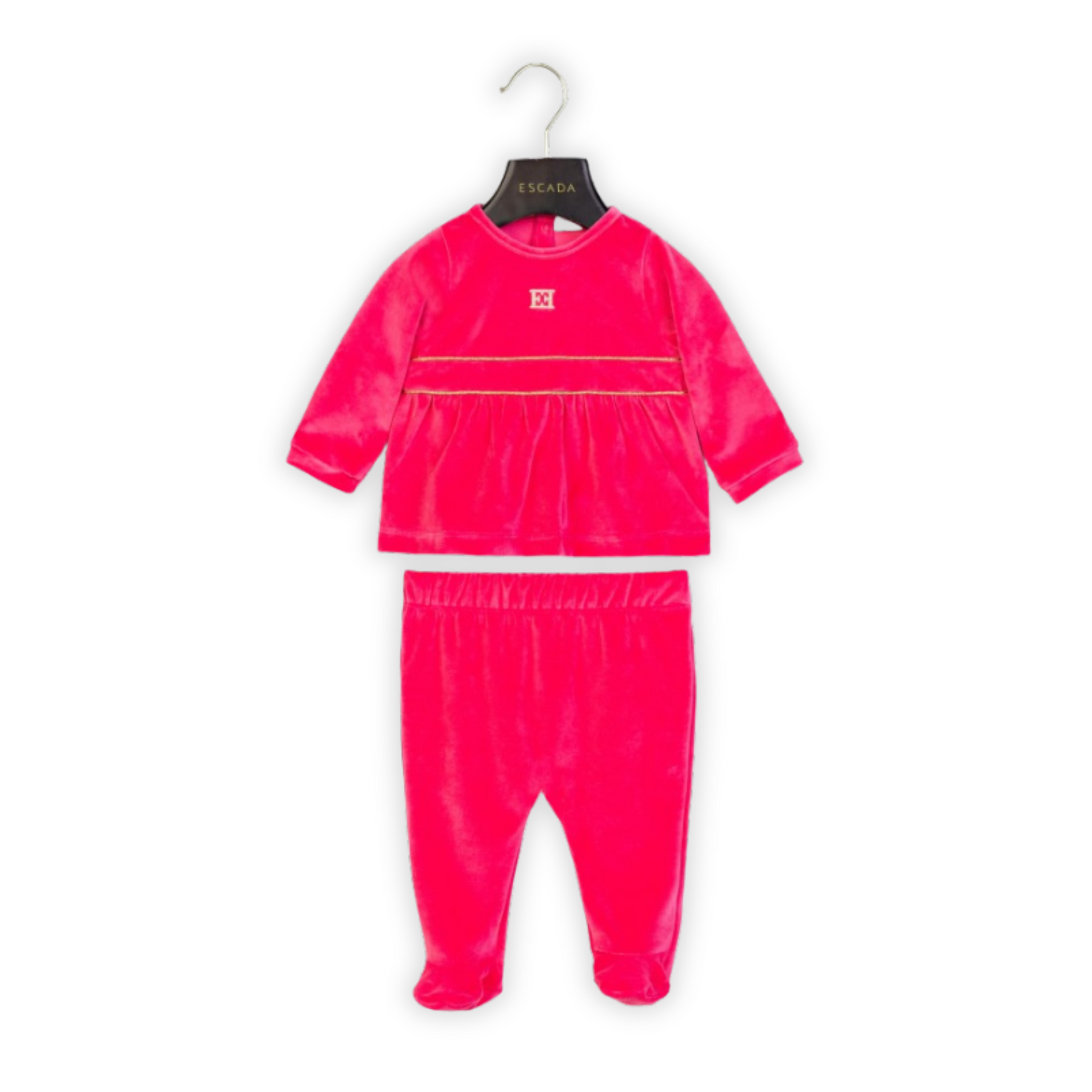 Dress your little one in luxury with this Escada baby outfit set, featuring a stylish top and bottom. Available in charming antique white and vibrant hot pink.