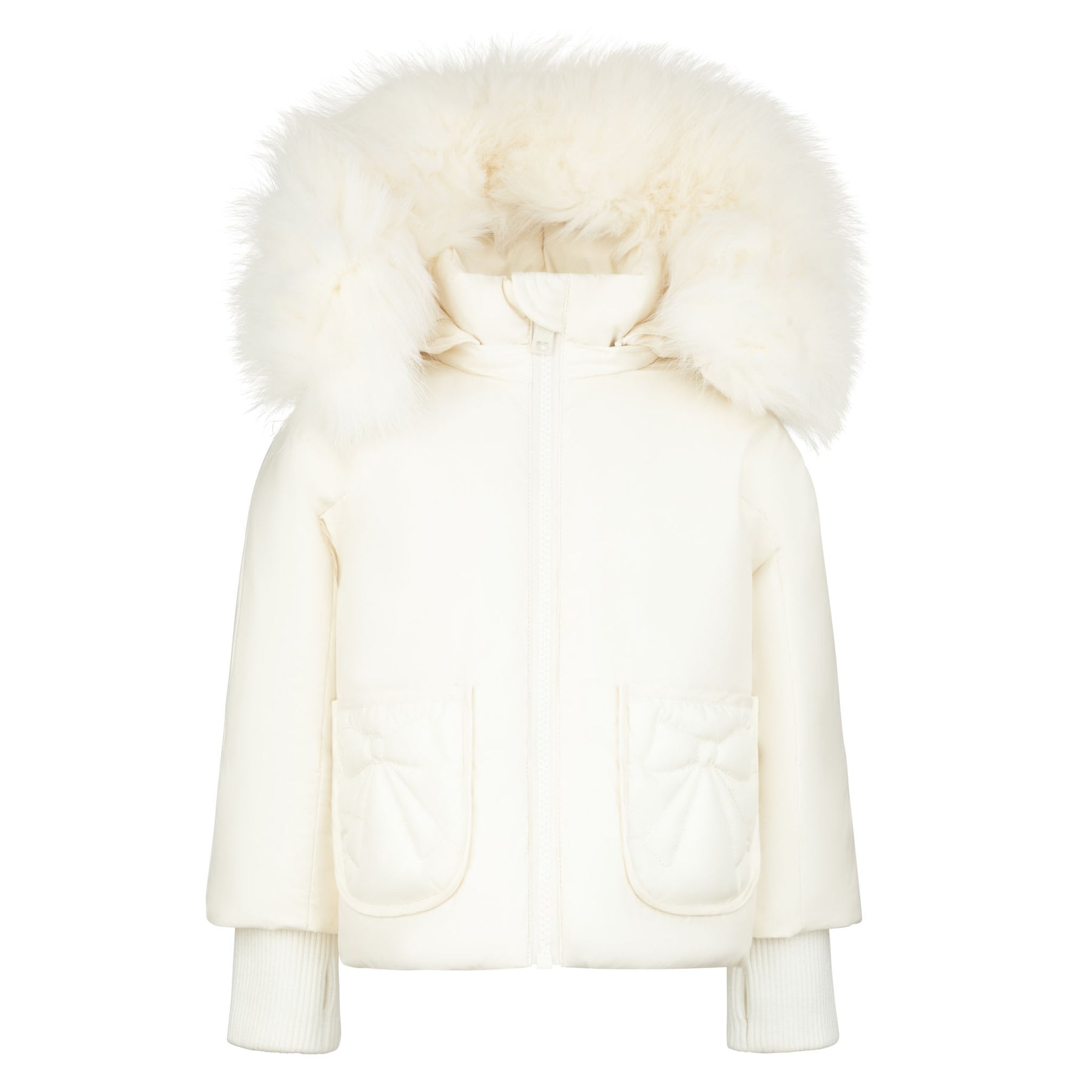Pramie Little Girls Ivory Bow Jacket 12M–18M | Elegant Baby Coat with Sweet Bow Accent