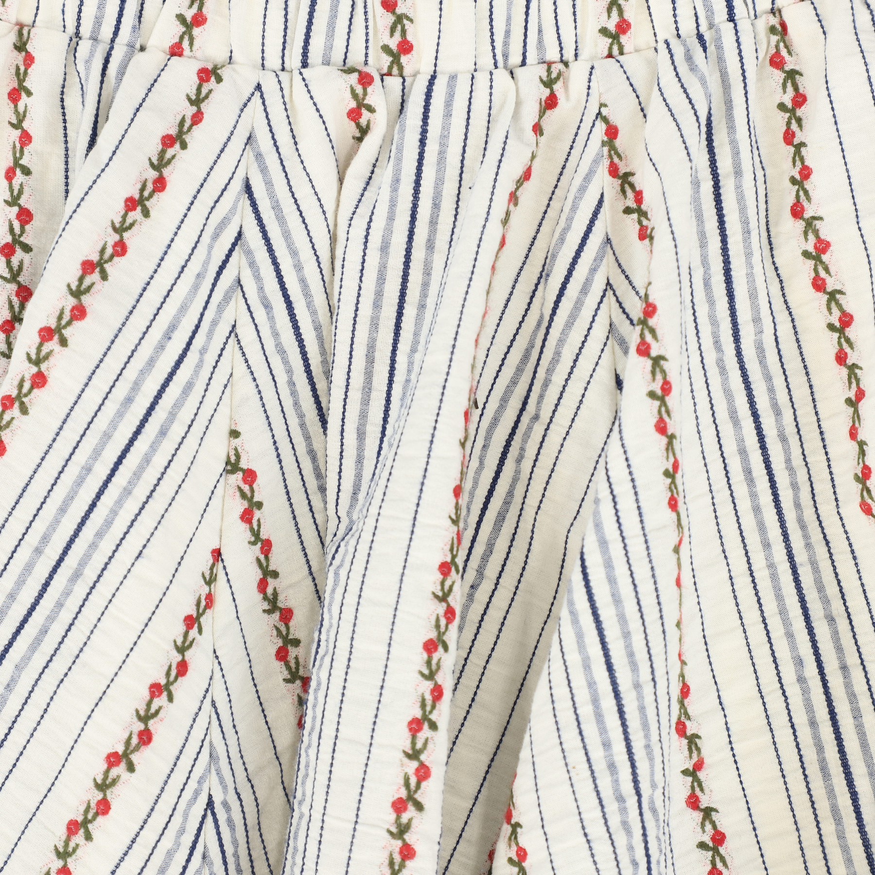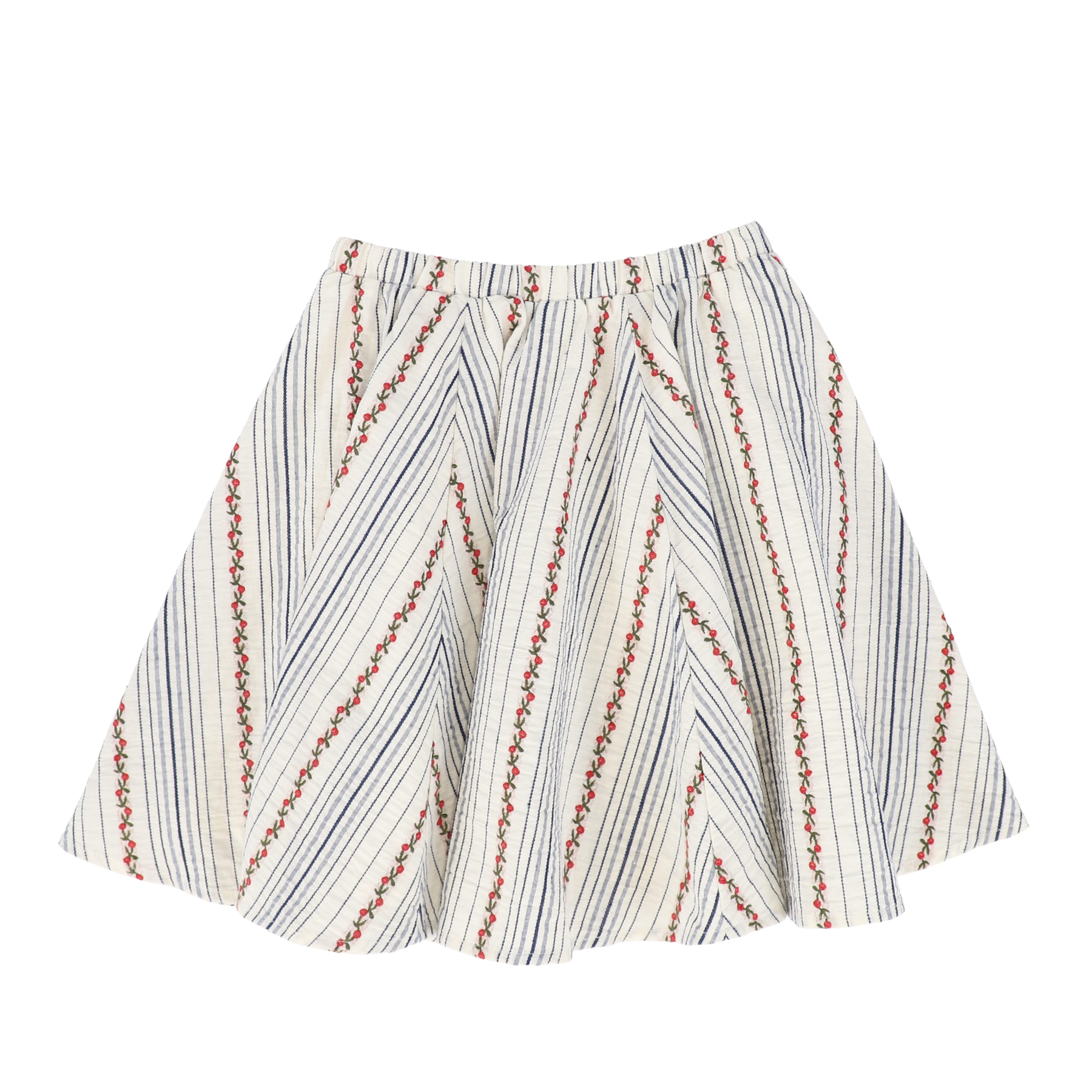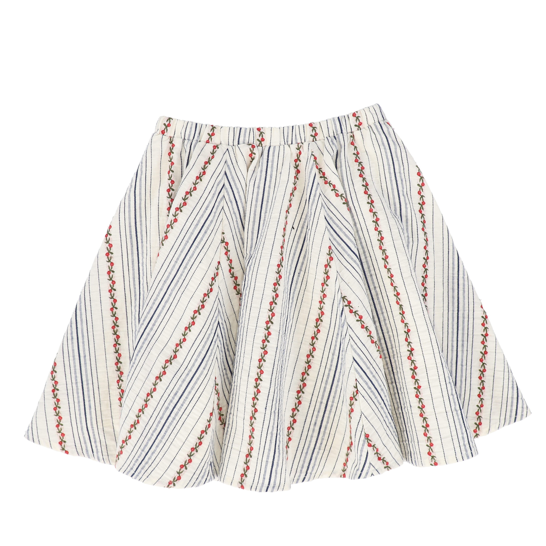 A playful striped floral skirt with a flared silhouette, crafted from soft cotton for effortless movement and everyday comfort with a touch of charm.