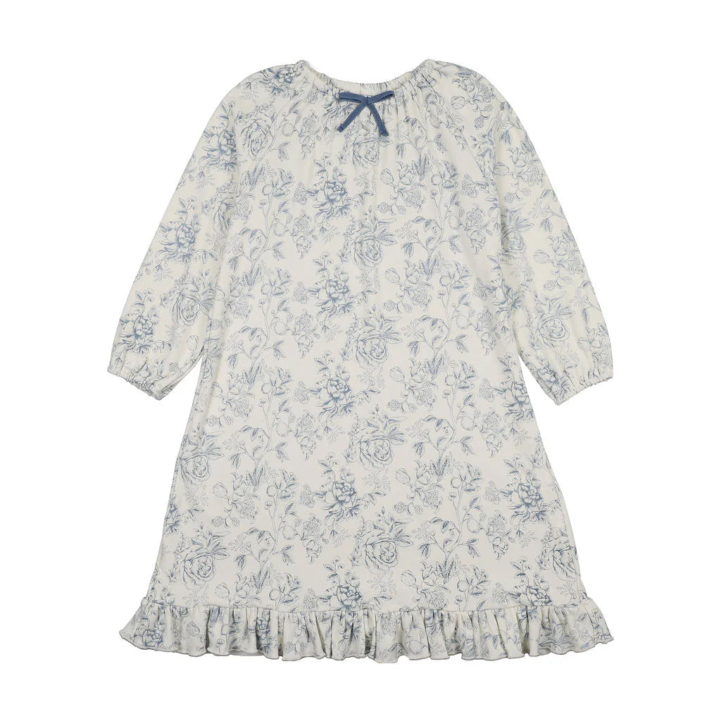 The Pouf – Toile Nightgown Blue blends timeless charm with soft, breathable comfort. Crafted from a lightweight cotton blend, this nightgown features a delicate blue toile print for an elegant, heirloom-inspired feel. The relaxed silhouette allows for easy movement, making it perfect for restful nights and cozy mornings. Designed with both comfort and classic style in mind, it’s a beautiful addition to any little sleepwear collection.