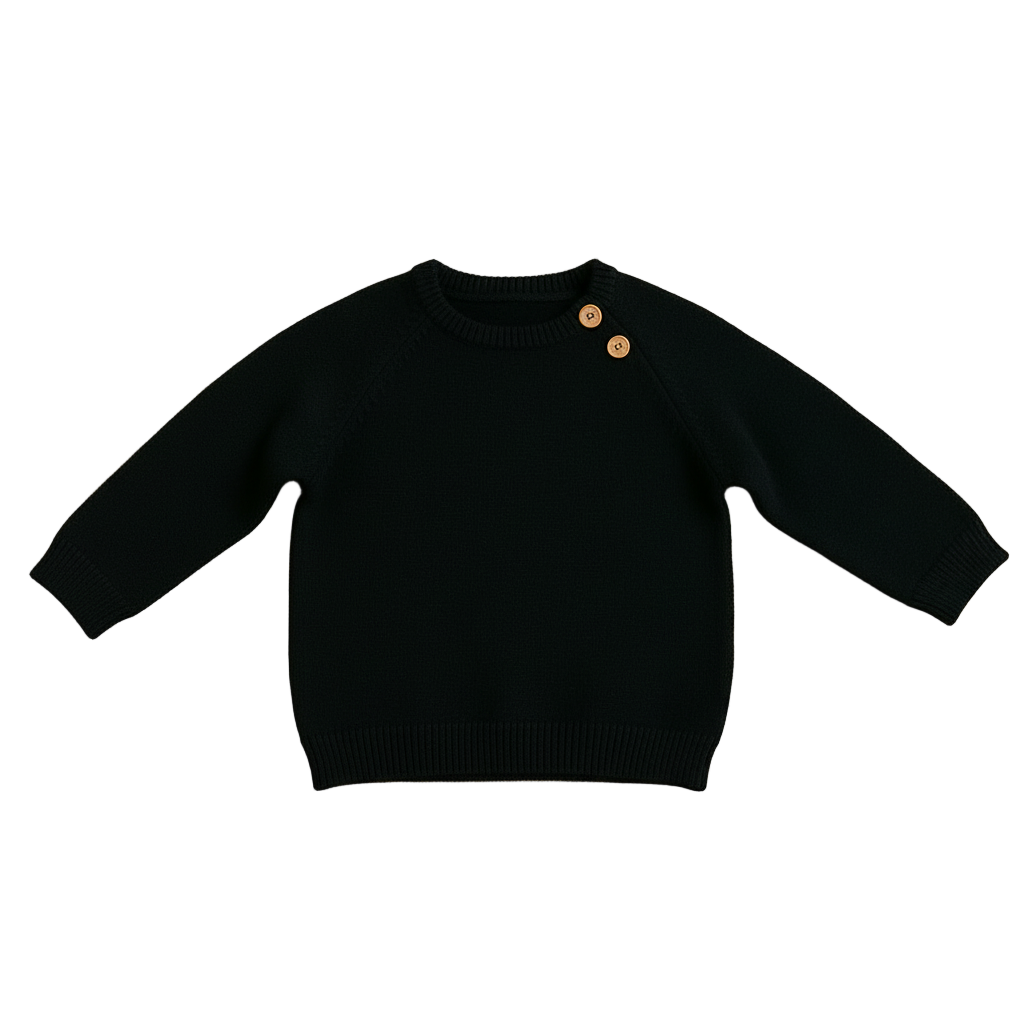 Keep little ones cozy and stylish with the Baby Black Carousel Stitching Sweater—soft knit fabric, classic design, perfect for school, outings, or layering.