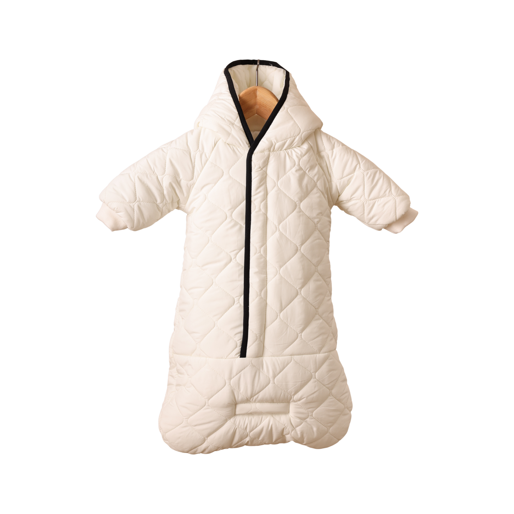 Keep your baby warm, secure, and effortlessly stylish in the Diamond Shape Quilted Baby Bunting in White/Black. Crafted with soft, cozy insulation and a modern diamond-quilted design, this full-body bunting offers head-to-toe coverage with fold-over mittens and a snug hood. The crisp white fabric paired with striking black accents adds a sophisticated, unisex touch—perfect for strolls, chilly outings, or daily wear during cooler months.