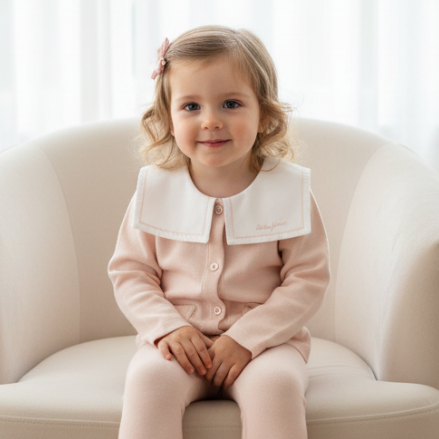 The Heritage Bib Collar Collection: Timeless Monochrome Style Elevate your child’s formal wardrobe with the Little Parni Black/White Bib Collar Cardigan Set. This coordinated 2-piece ensemble perfectly balances traditional European "Sailor-chic" with modern comfort. Known for its iconic contrasting Peter Pan bib collar, this set is a boutique favorite for family portraits and holiday gatherings.